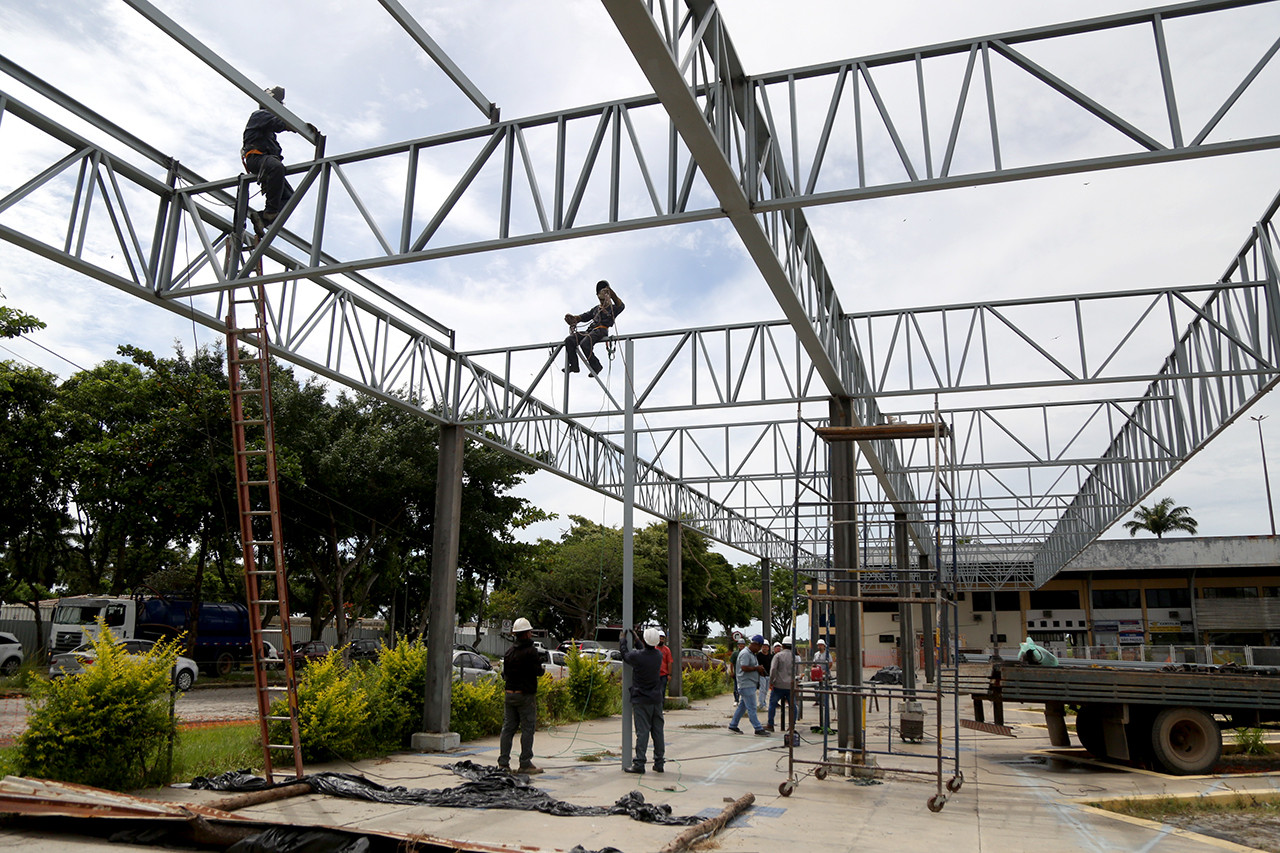 Com cerca de três meses de trabalho, os operários já removeram a estrutura antiga e finalizam a instalação da nova para a fixação da telha de cobertura, o que deve ocorrer nas próximas semanas