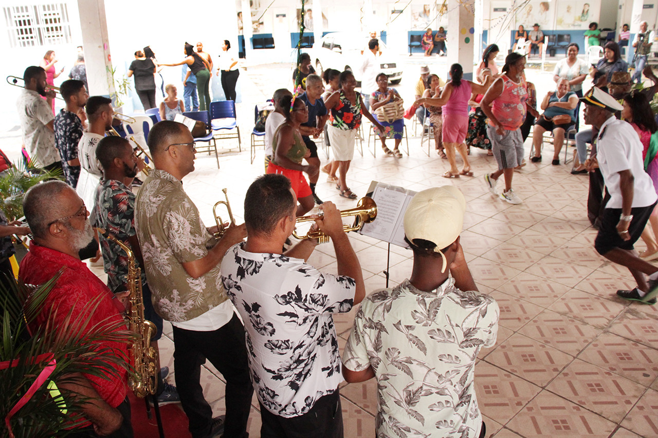 A folia carnavalesca reuniu dezenas de assistidos no espaço, que cantaram e dançaram marchinhas, forró e sambas antigos