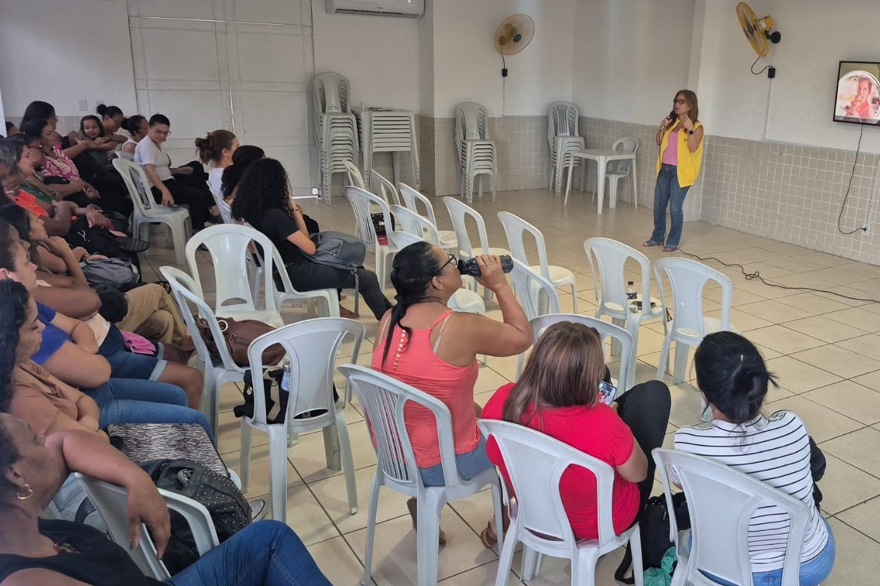 Nesta terça, equipes da Saúde Mental e Comportamento Alimentar realizaram palestra para mais de 50 profissionais da escola do Parque Santa Rosa e a programação segue até sexta-feira
