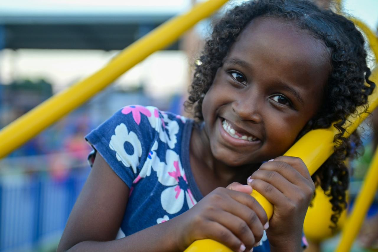 Andressa Martins, moradora da Tira Gosto, levou sua filha Daphne, de 5 anos, para brincar no playground. “Ela vai ter o que não tive. Na minha época não tinha onde brincar, não tinha diversão. Ficou surreal essa área. Só tenho a agradecer, muito mesmo”.
