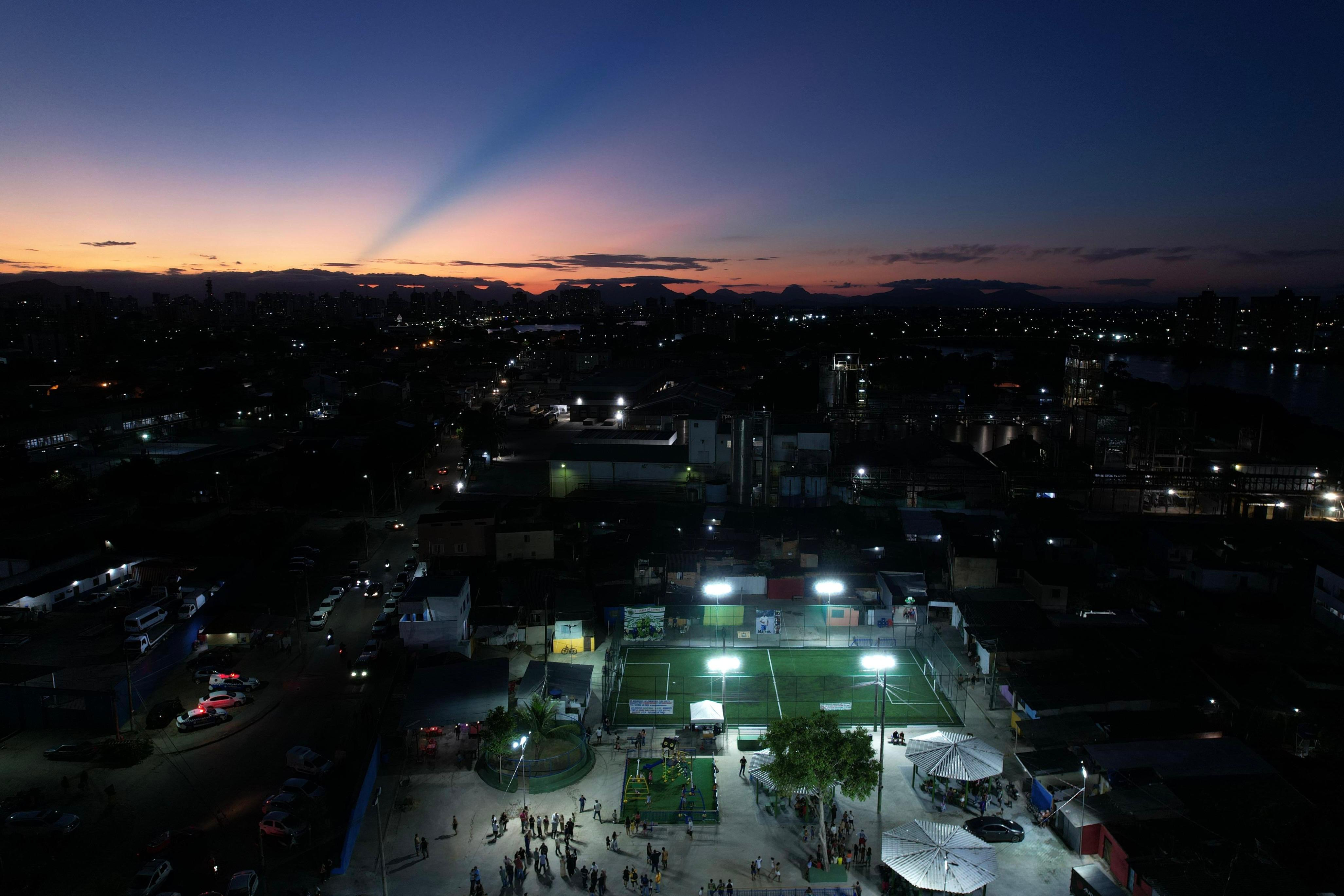 A comunidade da Tira Gosto ganhou um novo equipamento de lazer. O prefeito Wladimir Garotinho inaugurou, na noite dessa quinta-feira (5), campo de grama sintética com vestiário e mini arquibancada, além de área de lazer com playground infantil e academia da terceira idade. Esta foi a segunda inauguração do dia. Antes, na parte da manhã, o prefeito reinaugurou o Centro de Atenção Psicossocial Dr. Ari Viana (Caps AD – Álcool e Drogas), que foi completamente remodelado.