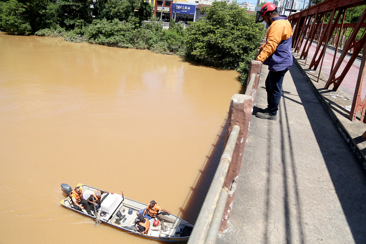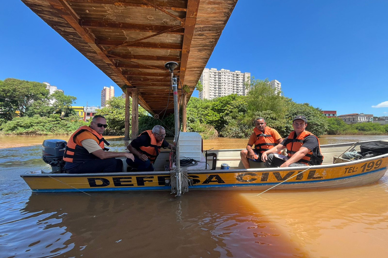 Nesta segunda-feira (16), técnicos de uma empresa contratada pelo Governo do Estado realizaram a batimetria, procedimento que permite obter informações sobre as características físicas do fundo do Rio Paraíba do Sul