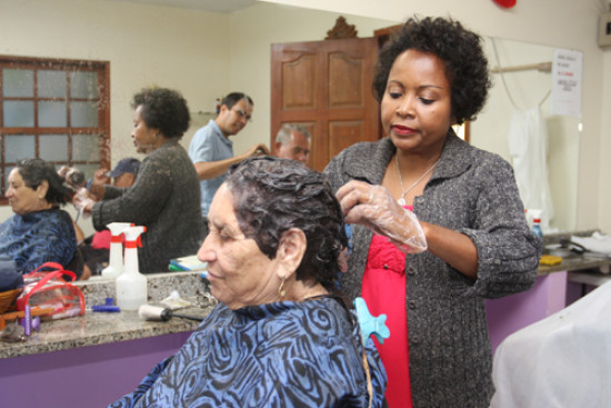 Na porta, um aviso pedindo silêncio, mas do lado de dentro, barulho de tesoura, secador e alicate de unha junta-se ao falatório comum aos salões de beleza. Essa é a rotina do salão de beleza montado no Clube da Terceira Idade, em parceria com a secretaria municipal de Família e Assistência Social, e que funciona de segunda à sexta-feira, das 7h às 16h, atendendo, gratuitamente, a idosos cadastrados no órgão com serviços como corte de cabelo, pintura de cabelo, hidratação, penteado, barba e unha. Para dar um “tapa no visual”, basta agendar o atendimento na sede do Clube, situada à Rua Rodrigues Peixoto, nº 91, no Parque Tamandaré.