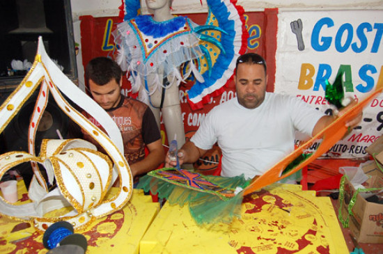 O vermelho e branco do Turfe Clube já está com o desfile praticamente pronto e no barracão o trabalho é de preparação das últimas fantasias e carros que vão para a avenida.