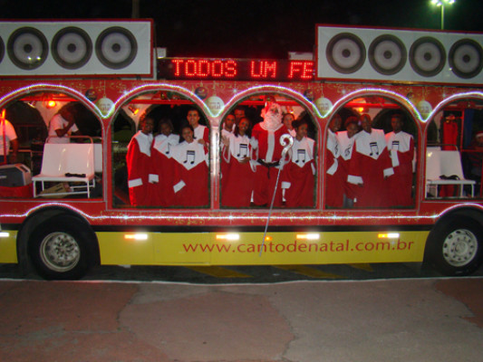 O ônibus-palco itinerante, todo decorado, levará aos munícipes de forma gratuita, o coral de vozes natalinas, passando por um roteiro previamente estabelecido e, de tempos em tempos, parando em alguns pontos estratégicos para interagir com o público. A apresentação ocorre entre 18h às 22h. Durante as paradas, o público poderá fazer uma inscrição, também gratuita, para ser fotografado com o papai Noel, sendo a foto revelada e dada de presente aos moradores na hora.