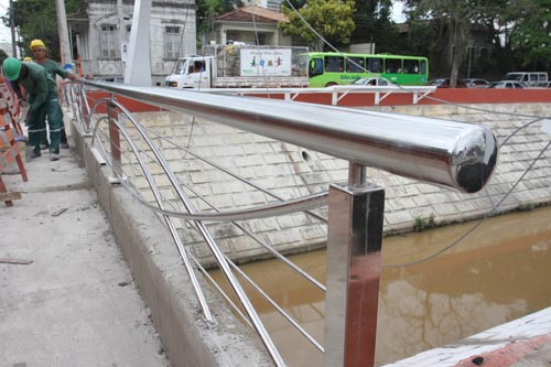 Uma outra novidade que pode ser vista pelos campistas que transitam pelo local foi a colocação dos guarda-corpos de aço inoxidável, que embelezou ainda mais a obra, pela qualidade do material utilizado no acabamento das passagens sobre o valão.