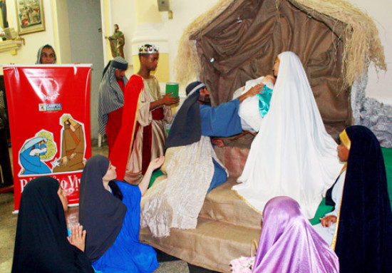 Olhares atentos. Quem participou da missa de preparação para o Natal na noite desta quarta-feira (14), na Igreja São Benedito, teve a chance de se emocionar com o Presépio Vivo Itinerante, da Fundação Trianon. A encenação contou a anunciação da chegada do Menino Jesus. Os atores do Grupo de Teatro Sacro Dom Carlos Alberto Navarro deram vida aos personagens da mais bela história da humanidade.