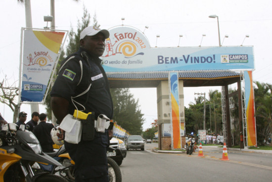 A segurança está garantida no Farol de São Tomé. A novidade este ano é o uso da arma não letal conhecida como Taser, que reforçou o esquema montado pela Coordenadoria de Segurança e Ordem Pública, que conta com 120 guardas municipais e 100 homens da Policia Militar.