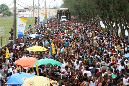 O trio elétrico arrastou milhares de pessoas na tarde deste domingo (1), na praia do Farol de São Tomé, na programação do Verão da Família 2012. O frio e a chuva não desanimaram a galera. A banda Fuzueira e o cantor Dom Américo contagiaram a multidão.
