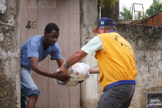 A distribuição dos alimentos está sendo feita de barco por equipes da Prefeitura, a cerca de 500 famílias que insistem em permanecer nas lajes de suas casas. A localidade foi inundada na quinta-feira (5), depois do rompimento de um trecho da BR-356, que não suportou a força da água do Rio Muriaé.