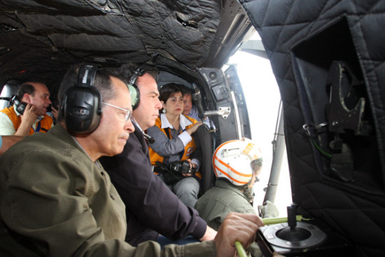 Acompanhada pelos ministros da Integração Nacional, Fernando Bezerra; e de Transportes, Paulo Sérgio Passos, a Prefeita Rosinha Garotinho sobrevoou, na manhã desta terça-feira (10), a área afetada pela cheia do Rio Muriaé em Campos e na localidade de Outeiro, no município vizinho de Cardoso Moreira.