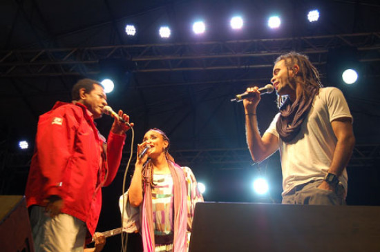 Na segunda edição do Projeto “Aquele Abraço”, o cantor Jair Rodrigues e seus filhos Luciana Mello e Jair Oliveira fizeram um show animado, prestigiado por um grande público, na noite desta sexta-feira (13), no Lagamar. No repertório com vários clássicos da Música Popular Brasileira (MPB), não poderiam faltar os grandes sucessos, como “Deixa isso prá lá”, “Disparada” e “Majestade Sabiá”. O show, de pouco mais de 1 hora de duração, começou com a apresentação de Jair Oliveira, depois entrou em cena Luciana Mello, seguida por Jair Rodrigues. No final, os três cantaram juntos.