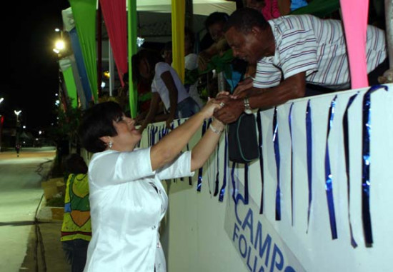 A prefeita Rosinha Garotinho chegou à Passarela do Samba Dalvino Costa , onde daqui a pouco desfila a Escola de Samba Porto da Pedra, cumprimentando o público que já ocupa as arquibancadas. Ela elogiou a decoração e falou da expectativa de ver um espetáculo ainda mais bonito do que o que foi mostrado no ano passado durante o Carnaval fora de época da cidade. A prefeita também anunciou o lançamento do projeto “Bambas da Planície” para o dia 13 de Maio, Abolição da Escravatura, com sambas de compositores campistas. No projeto, também, estão músicas do sambista Geraldo Gamboa, homenageado da prefeitura, este ano, durante o Carnaval que tem como tema “Os 100 Anos de Noel Rosa”.