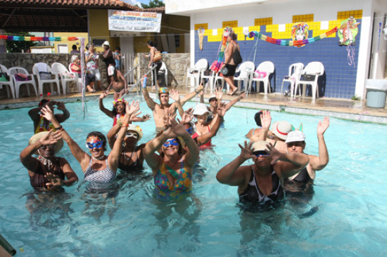 Os cerca de 40 alunos que estão recebendo aulas do professor William Rocha, do Clube da Terceira Idade, tiveram nesta terça-feira (14), um dia diferente e dos mais animados: numa proposta de incrementar este período carnavalesco, recordando velhos sucessos que marcaram a juventude nos bailes das décadas de 30 a 50 e, ainda, estimulando a auto estima de cada um, foi realizado o I Grito de Carnaval. Entre confetes, serpentinas, fantasias, marchinhas como “Mamãe eu quero”, “As pastourinhas”, “Maria Sapatão” e “Cabeleira do Zezé”, a animação era destaque na piscina da instituição.