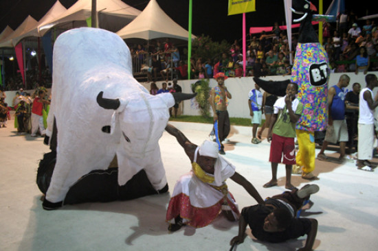 Antes do Travolta o Boi Pimenta, encantou a platéia com sua bateria que não ficou atrás de nenhuma grande escola, com suas paradinhas e ritmo contagiante. Homenageando Joceli da Silva, a Dadá do Boi Novo Aurora, que emocionada veio a frente do Pimenta abrindo o desfile.