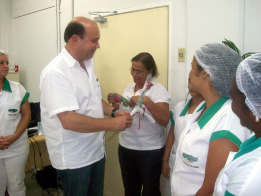 A Fundação Municipal de Saúde, por meio da Assessoria de Gestão de Pessoas e da Superintendência de Administração e Finanças, homenageou nesta quinta-feira (8), as funcionárias do Hospital Ferreira Machado e do Hospital Geral de Guarus pelo Dia Internacional da Mulher. No HFM, os funcionários da recepção e da portaria, Ubirajara Gervázio e Amanda, distribuíram rosas vermelhas e cartões para as funcionárias.