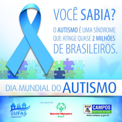 O Dia de Conscientização do Autismo, na próxima segunda-feira (02), conhecido como “Dia A”, será amplamente lembrado em Campos pela Secretaria Municipal da Família e Assistência Social, através dos seus vários equipamentos, junto com a Special Olympics Brasil, entidade que destaca o potencial destas pessoas, valorizadas pelas suas habilidades e não pelas suas limitações. O evento acontecerá no Jardim São Benedito, a partir das 14h.
