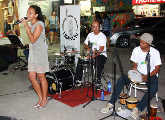 O samba animou o começo da noite desta quarta-feira (11), no Centro de Compras da Pelinca, com a apresentação da cantora Maria Fernanda. O show “Samba: tempero brasileiro” foi apresentado dentro do projeto “O espetáculo bem mais perto de você”, da Fundação Trianon. Quem passava pelo local parava para curtir o show, com canções de grandes mestres do estilo, como Nelson Cavaquinho e Dorival Caymmi.
