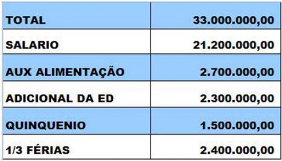 Dos R$ 33 milhões destinados ao pagamento de professores e funcionários administrativos, foram pagos R$ 2,7 milhões de auxílio alimentação; R$ 2,3 milhões em adicionais da Educação, garantidos pelas leis municipais 5132/90 e 7345/02; R$ 1,5 milhão de quinquenio e R$ 2,4 milhões de abono de férias.
