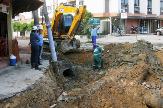 Sobre o transtorno, ele disse que é normal em toda a obra e que o atraso se deu, porque toda a parte da rede de esgoto da Rua Sete de Setembro teve de ser mudada."Tiveram de ser colocadas tubulações de recalque na Rua Sete", ressaltou Edilson Peixoto, que diz que a tubulação usada na obra, com tubos debaixo do chão, tem vida mais longa do que os tubos de concreto.