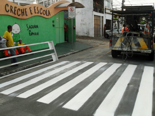 Na Rua das Palmeiras, foi feita a pintura de faixa de pedestres, em frente à creche escola Sagrada Família. Como é um local de grande freqüência de crianças pequenas e pais de alunos, diariamente, a faixa se torna necessária.