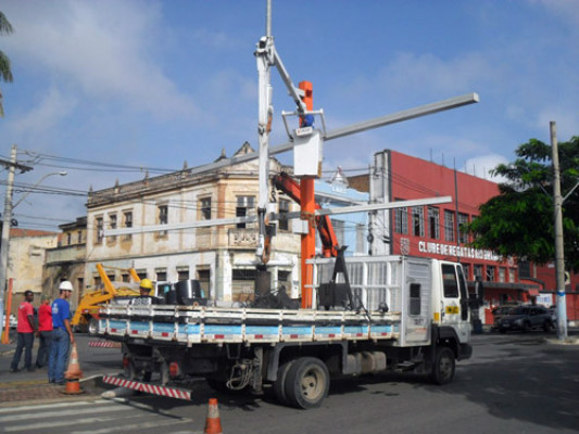 Funcionários da Empresa Municipal de Transporte (Emut) trabalharam por toda a manhã do último sábado (02) na reinstalação de um semáforo de vital importância para a organização do trânsito, na área central da cidade. Um acidente ocorrido na semana passada tombou o poste de sustentação do sinal de trânsito e uma operação maior teve que ser realizada para a recolocação, na confluência das ruas Marechal Floriano e Avenida Rui Barbosa.