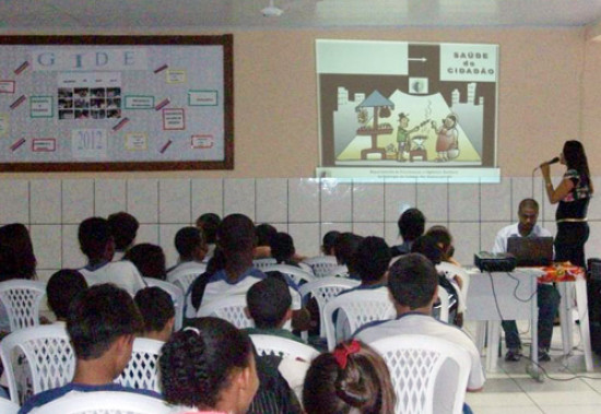 O Departamento de Informação, Educação e Comunicação em Saúde da Vigilância Sanitária (IEC Visa) realizou palestra, nesta terça-feira (26), sobre tabagismo na Escola Municipal Francisco Salles. A palestra integra as ações do projeto Aluno Vigilante! Professor Atuante, direcionado a alunos de escolas públicas e privadas. O assunto de hoje foi abordado pelos educadores sanitários Anan Paula Siqueira de Melo, Antônio Carlos Vangarges e Thaís Domingos.