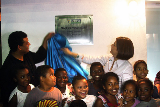 A Prefeita Rosinha Garotinho, junto com o vice-Prefeito Doutor Chicão, além de secretários e autoridades, deu prosseguimento na noite desta quinta-feira (28), à série de inaugurações, lançamentos de projetos e inspeções em obras. Às 19h, foi a vez de inaugurar a moderna praça do Parque Aldeia, dotada de equipamentos urbanos, que torna o espaço público um Centro de Convivência. As crianças foram as que mais se divertiram no espaço com modernos equipamentos.