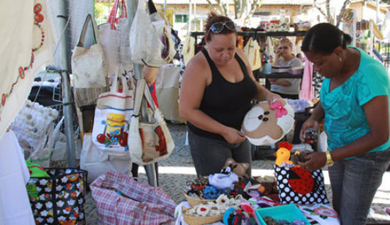 Bazar com artigos confeccionados por artesãs locais
