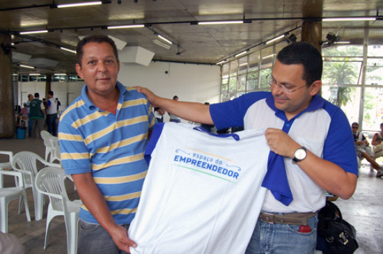 Luiz Cláudio Soares Viana, 55, recebeu das mãos do presidente da Codemca, Jivago Faria, uma camisa do Espaço Empreendedor e com um sorriso no rosto explica que trabalha com trenzinho da alegria. “O fato de trabalhar com crianças só faz com que eu deva ter ainda mais responsabilidade e me formalizar é uma forma de mostrar comprometimento com meu trabalho. Antes, costumava tirar as notas fiscais com meu CPF. Agora, já possuo CNPJ, o que é muito importante para mim. Centralizar todos os serviços que precisamos para nos formalizar, foi fundamental”, relata.