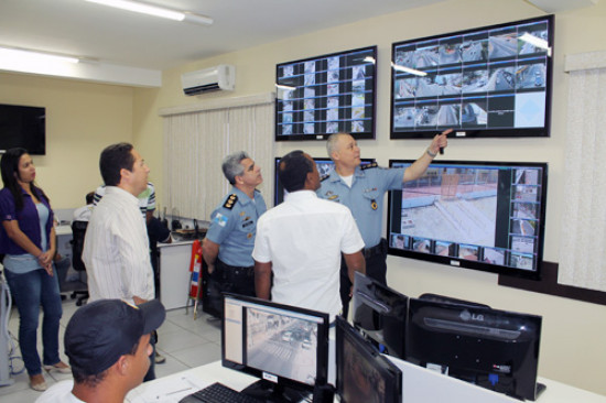Comandantes do 6º CPA e do 8º BPM na Central de Monitoramento