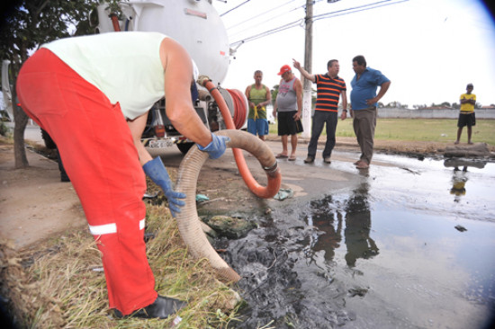 A Prefeitura de Campos realizou na tarde desta sexta-feira (21) obras de recuperação do sistema de drenagem na Rua Severino Coutinho, no Parque Prazeres. No local, um caminhão Silverjet sugou a água de esgoto, que estava acumulada na via. A obra foi um paliativo para uma obra maior, que começará na segunda-feira (24), quando o Canal dos Prazeres será dragado, desde a Lagoa dos Prazeres, e será retirada a manilha debaixo da ponte, que está obstruindo a passagem de águas limpas.