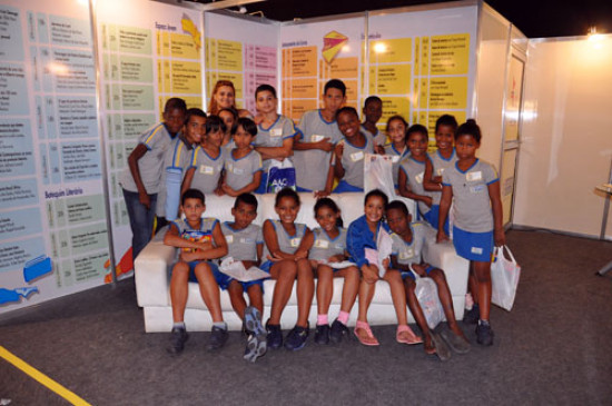 As crianças da escola puderam participar entrando em um flash rápido com o locutor Thiago Costa, falando da importância da Bienal do Livro, da leitura e ainda convidando os outros estudantes a prestigiarem a feira.