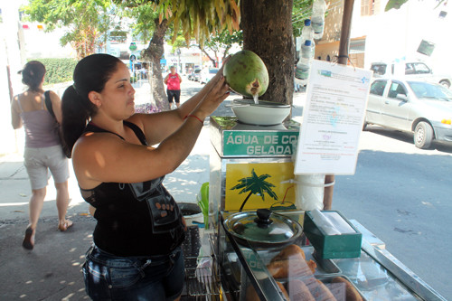 O forte calor tem gerado bons lucros para os vendedores de água de coco que, devidamente cadastrados no Programa de Formalização, realizam suas atividades comerciais em vários pontos da cidade. É o caso da comerciante Ludmila Faria que, após um mês de formalizada no Espaço do Empreendedor, trabalha com tranquilidade, se preocupando apenas em servir bem os clientes que frequentam o seu ponto, na Rua Marechal Deodoro. Ludmila faz parte de uma estatística que totaliza mais de 11 mil trabalhadores.