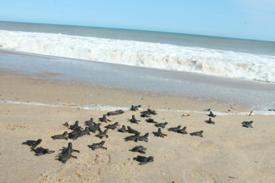 Soltura de tartarugas hoje na praia de Farol