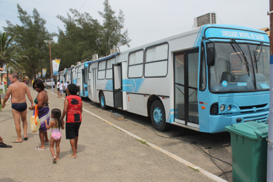 As quatro unidades foram posicionadas em frente à Tenda do Meio Ambiente. As ações começaram às 8h30 e prosseguirão até 15h. Benedita Maria Gonçalves Lopes, 48 anos, moradora do Parque São Caetano e veranista há anos na praia campista, aproveitou os serviços.