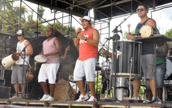 Cauã (voz), Kleber, Henrique e Guilherme (percussão), Tiago (cavaco), Andrade (baixo e voz) e Molô (violão). Essa é a turma animada e bonita do Grupo Dibobeira, que literalmente “fez a festa” em Lagoa de Cima, na tarde deste domingo (3). Muito samba, pagode, funk e axé, para agradar todas as gerações, foram o destaque do repertório que a banda levou às centenas de pessoas no balneário.