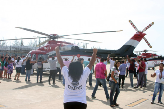 A Prefeita Rosinha Garotinho acompanha a manifestação pacífica que a população e sociedade social organizada realiza nesta quinta-feira (07), na pista do heliporto do Farol de São Thomé, em Campos. O objetivo do grupo é chamar a atenção da Presidente Dilma Roussef e autoridades para a importância dos royalties para os municípios e estados produtores de petróleo.