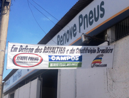 Marcado para esta sexta-feira (15), a partir das 18h, na Praça São Salvador, o ato público “Em defesa dos royalties e da Constituição” já mobiliza empresários no município. É o caso, por exemplo, do proprietário da Renove Recauchutadora, Marco Chalita, 34 anos, que esticou uma faixa na fachada de sua empresa com o texto da manifestação. Ele defende a manifestação e diz que sem os royalties do petróleo a cidade quebra, assim como sua empresa que emprega 48 trabalhadores diretamente. Outra empresa, que também, aderiu ao movimento com faixas foi a Schulz.