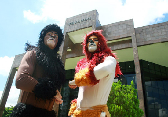 Dois atores do elenco do musical infantil “O Rei Leão” já estão em Campos, para fazer a divulgação do espetáculo em diversas escolas do município. Lucas Apóstolo, que dá vida ao personagem Simba, e Adam Gomes, que vive Scar, realizam as visitas aos colégios. A peça será apresentada neste domingo (24), às 17h, no Teatro Municipal Trianon. Os ingressos estão à venda na bilheteria do teatro e custam R$ 20,00 (inteira) e R$ 10,00 (meia).