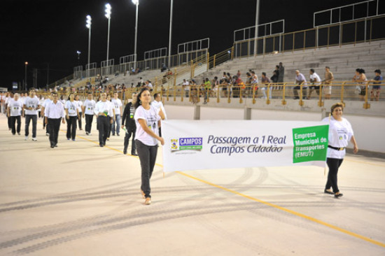 Durante o desfile, os funcionários da Emut, portaram faixas, onde se destacavam os principais programas que são desenvolvidos pelo órgão, entre eles, os de maior destaque e que ganharam a aprovação da população, como o Programa de passagem a 1 real, através da utilização do Cartão Campos Cidadão, a padronização dos taxis, que ganharam maior visibilidade e a padronização do serviço prestado pelo transporte alternativo em bairros e distritos de Campos.
