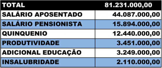 De janeiro a dezembro de 2012, a prefeitura destinou recursos na ordem de R$ 81.231.000,00 para as folhas de pagamento de aposentados e pensionistas. No montante proveniente dos cofres públicos estão incluídos o 13º salário e os principais direitos pagos em folha, como qüinqüênio, produtividade – pagos a fiscais de renda, transporte e obra, além de insalubridade, calculada com índices de 20% e 40% - e adicional de Educação para os professores aposentados.