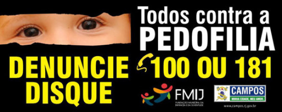 A campanha “Todos contra a pedofilia” tem atraído à atenção de diversos setores da sociedade. Por isso, a Fundação Municipal da Infância e da Juventude (FMIJ) promove, nesta sexta-feira (17), o I Seminário de Combate ao Abuso e Exploração Sexual de Crianças e Adolescentes, que vai esclarecer dúvidas de educadores e profissionais da educação e sociedade de maneira geral. O evento acontece no Auditório Cristina Bastos, no Instituto Federal Fluminense (IFF) das 8h às 17h.