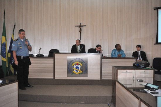 Segurança Pública foi o tema da sessão especial na Câmara Municipal, presidida pelo vereador Alexandre Tadeu, nesta segunda-feira (20). O coordenador de Segurança e Ordem Pública, coronel Alcemir Pascoutto, acompanhado de autoridades da Polícia Militar e da Polícia Civil, participou do ato, que teve por finalidade apresentar estatísticas e discutir questões de combate à violência e à criminalidade no município.