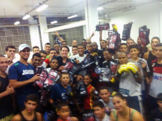 O campeão do TUF Brasil 2, Léo “Lamparão” Santos, esteve nesta terça-feira (18) no Instituto Reação, projeto social de artes marciais liderado pelo medalhista olímpico de judô e apresentador de programa esportivo Flávio Canto. Na oportunidade, Léo Santos distribuiu materiais do UFC para serem usados em treinos de lutas, como roupas, luvas e protetores, para os participantes do projeto, que ficaram muito agradecidos e satisfeitos em ver de perto o campeão do TUF Brasil 2.