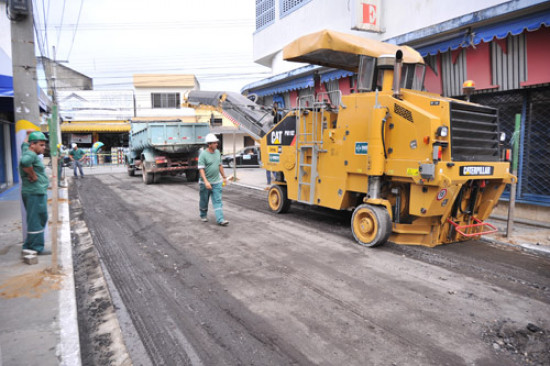 Operários fazem a retirada do asfalto para dar início à implantação do sistema de drenagem. “A obra neste trecho vai beneficiar, principalmente, a Rua Doutor Oliveira Botelho, ponto que fica empossado em dias de chuvas”, comentou.