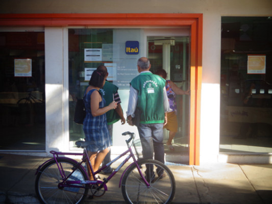 Foram fiscalizadas quatro agências e, em uma delas, os fiscais lavraram um auto de infração por falta de assento para os idosos. Todas as agências do município estão sendo fiscalizadas.