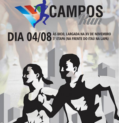 A Fundação Municipal de Esportes (FME) realiza neste domingo (04), a 3ª etapa do Circuito de Corrida de Rua de Campos, o Campos Run, dentro das festividades do Santíssimo Salvador. A largada da corrida infantil será às 8 horas, seguida da prova adulta às 8h30, com largada e chegada em frente ao Cais da Lapa. O percurso será de 5 km pela Avenida XV de Novembro até a ponte General Dutra, retornando até o local da largada.