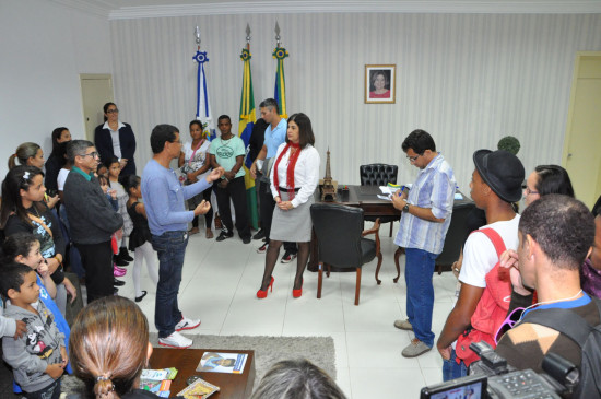 A prefeita Rosinha Garotinho recebeu em seu gabinete, nesta quarta-feira (28), a homenagem de uma comissão representando os cerca de 1.400 alunos que fazem os cursos oferecidos gratuitamente pela Superintendência da Igualdade Racial, principalmente a turma do Pré-vestibular, que agradeceu o apoio dado pela Prefeitura.