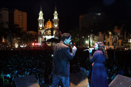 Os cantores Cassiane e Jairinho encheram a praça São Salvador no sábado (12), Dia dos Namorados, de emoção e fé, dentro da programação especial realizada pela prefeitura. Pessoas espalhadas por todos os lugares da praça, cantaram e louvaram ao som de “Vou Seguir”, “Com Muito Louvor”, “O Amor é Mais” e “O Tempo Não Pode Apagar”, entre outros. Um dos momentos marcantes do show foi a benção das alianças, para casados, noivos e até namorados que tinham anel de compromisso.